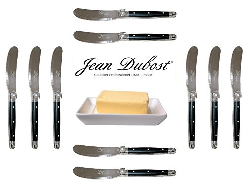 PRODUCT DESCRIPTIONS:AUTHENTIC LAGUIOLE : set of 10 original French Jean DUBOST LAGUIOLE butter knives. * * * Each knife : length = 15.50 cm (6") - weight = approx. 20 grams. * * * Manufactured in France. Delivered from France in two open wooden boxes with Certificate Of Authenticity. * * * This genuine LAGUIOLE set is suited for any occasion: a dinner party with your friends, the yearly Christmas party or the daily family dinner. With this exceptional LAGUIOLE silverware set each occasion indeed turns really special! * * * Our LAGUIOLE products also make that special, stylish gift: whether to celebrate a birthday, an anniversary, an engagement or wedding, a promotion or Christmas/New Year, this LAGUIOLE set always will be the perfect present. * * * For our complete French original LAGUIOLE cutlery + steak knives range (more than 400 products!) : please visit our shop ("FRENCH-DIFFUSION")