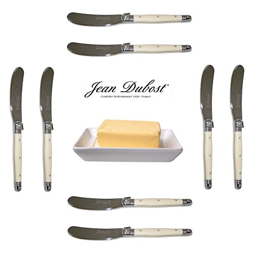 PRODUCT DESCRIPTIONS:AUTHENTIC LAGUIOLE : set of 8 (2x4) original French Jean DUBOST LAGUIOLE butter knives in stainless steel. * * * Each knife : length = 15.50 cm (6") - weight = approx. 20 grams. * * * Manufactured in France. Shipped directly from France in two open wooden boxes with CERTIFICATE OF AUTHENTICITY. * * * This genuine LAGUIOLE set is suited for any occasion: a dinner party with your friends, the yearly Christmas party or the daily family dinner. With this exceptional LAGUIOLE silverware set each occasion indeed turns really special! * * * Our LAGUIOLE products also make that special, stylish gift: whether to celebrate a birthday, an anniversary, an engagement or wedding, a promotion or Christmas/New Year, this LAGUIOLE set always will be the perfect present. * * * For our complete French original LAGUIOLE cutlery + steak knives range (more than 400 products!) : please visit our shop ("FRENCH-DIFFUSION")