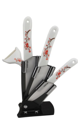 Excellent Offer Melange W4PC654PRB 5-Piece Ceramic Knife Set, Red Berries Handle/ White Blade - The Best Cheap Product