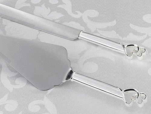 PRODUCT DESCRIPTIONS:Share those first bites of cake as a couple with this silver heart knife & server set. The heart detail on the handles is what makes this set so stunning. They are silver plated, tarnish resistant and measure 12".