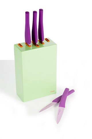 Order BRANDANI OFFICIAL 3D KNIVES BLOCK GREEN WITH 5 KNIVES LILAC NON STICK BLADE INOX 55422 - The Best Complete Reviews