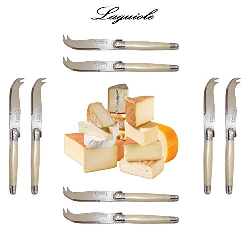 PRODUCT DESCRIPTIONS:AUTHENTIC LAGUIOLE : 8 original French Jean DUBOST LAGUIOLE cheese knives. * * * Each knife : length = 15 cm (5 7/8") - weight = approx. 20 grams. Manufactured in France. Delivered from France in two open wooden boxes with CERTIFICATE OF AUTHENTICITY. * * * Dishwasher safe (note: do not leave in a damp dishwasher). * * * This genuine LAGUIOLE set is suited for any occasion: a dinner party with your friends, the yearly Christmas party or the daily family dinner. With this exceptional LAGUIOLE silverware set each occasion indeed turns really special! * * * Our LAGUIOLE products also make that special, stylish gift: whether to celebrate a birthday, an anniversary, an engagement or wedding, a promotion or Christmas/New Year, this LAGUIOLE set always will be the perfect present. * * * For our complete French LAGUIOLE cutlery + steak knives range (more than 400 products!) : please visit our shop ("FRENCH-DIFFUSION")