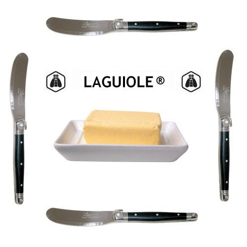 PRODUCT DESCRIPTIONS:AUTHENTIC LAGUIOLE : set of 4 original French Jean DUBOST LAGUIOLE butter knives in 20/10 stainless steel. * * * Each knife : length = 15.50 cm (6") - weight = approx. 20 grams. * * * Manufactured in France. Delivered from France in open wooden box with Certificate Of Authenticity. * * * This genuine LAGUIOLE set is suited for any occasion: a dinner party with your friends, the yearly Christmas party or the daily family dinner. With this exceptional LAGUIOLE silverware set each occasion indeed turns really special! * * * Our LAGUIOLE products also make that special, stylish gift: whether to celebrate a birthday, an anniversary, an engagement or wedding, a promotion or Christmas/New Year, this LAGUIOLE set always will be the perfect present. * * * For our complete French original LAGUIOLE cutlery + steak knives range (more than 400 products!) : please visit our shop ("FRENCH-DIFFUSION")