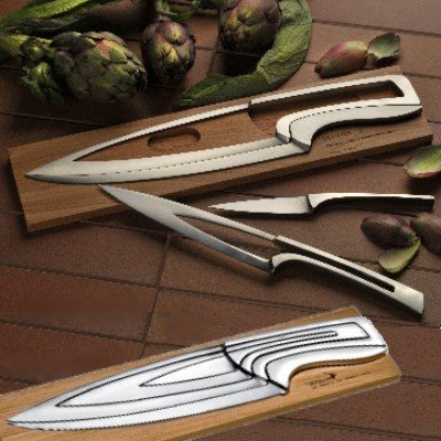 PRODUCT DESCRIPTIONS:ProPassione-description: Silver line - This stylish premium knife set reflects the ultimate synthesis of design and functionality and combines luxury and beauty. Made from high quality satined stainless steel makes food preparation and cooking a pleasure with these knives. Their carcass design makes them easy to clean. The matching design block takes care of a representative display and holds the knives handy for instant use. - A distinctive design product out of the Déglon- MEETING®-Series awarded with the European Cutlery Design Award. Fully forged and cut from one piece of high quality stainless steel. Exceptional knives with cultural and artistic values and an individual character as well as extraordinary handling characteristics. - Déglon MEETING, set of 4 knives with oak block, satined stainless steel, vegetable knife l 9 cm, kitchen knife l 17 cm, chef's knife l 22 cm, fileting knife l 24 cm. Dimensions of Block: l 35 x w 8.5 x h 1.1 cm. - For all Déglon-Products you cannot find in our shop we are happy to prepare a special offer for you.