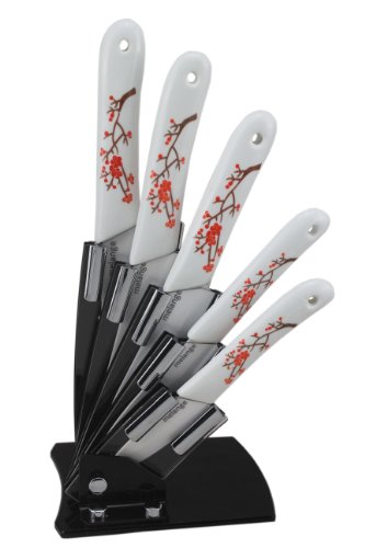 Brand New Melange W5PC65543RB 6-Piece Ceramic Knife Set, Red Berries Handle/ White Blade - The Best Product At Low Price