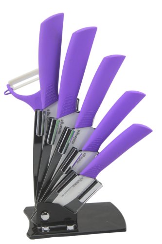 Melange W6PC65543PPu 7-Piece Ceramic Knife Set, Purple Handle/ White Blade