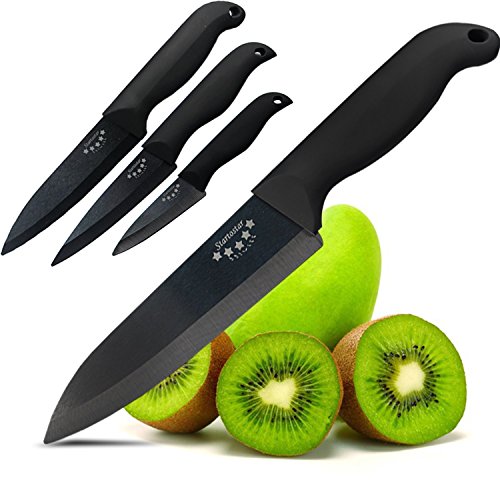 Buy Quality Startostar 4 Piece Ceramic Knife Set with Cover,6"Chef's,5"Slicing,4"Fruit Slicer,3"Paring Vegetable Peeler(Black) - The Best Complete Reviews