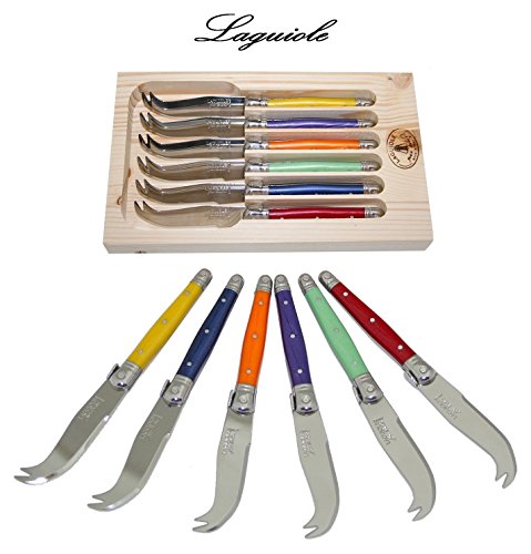 PRODUCT DESCRIPTIONS:AUTHENTIC LAGUIOLE : set of 6 original French Jean DUBOST LAGUIOLE cheese knives. * * * Each knife : length = 15 cm (5 7/8") - weight = approx. 20 grams. Manufactured in France. Delivered from France in open wooden box with CERTIFICATE OF AUTHENTICITY. * * * Dishwasher safe (note: do not leave in a damp dishwasher). * * * This genuine LAGUIOLE set is suited for any occasion: a dinner party with your friends, the yearly Christmas party or the daily family dinner. With this exceptional LAGUIOLE silverware set each occasion indeed turns really special! * * * Our LAGUIOLE products also make that special, stylish gift: whether to celebrate a birthday, an anniversary, an engagement or wedding, a promotion or Christmas/New Year, this LAGUIOLE set always will be the perfect present. * * * For our complete French LAGUIOLE cutlery + steak knives range (more than 400 products!) : please visit our shop ("FRENCH-DIFFUSION")