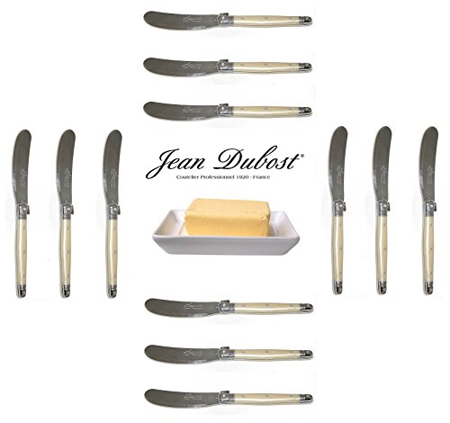 PRODUCT DESCRIPTIONS:AUTHENTIC LAGUIOLE : 12 original French Jean DUBOST LAGUIOLE butter knives. * * * Each knife : length = 15.50 cm (6") - weight = approx. 20 grams. Manufactured in France. Delivered from France in two open wooden boxes with CERTIFICATE OF AUTHENTICITY. * * * This genuine LAGUIOLE set is suited for any occasion: a dinner party with your friends, the yearly Christmas party or the daily family dinner. With this exceptional LAGUIOLE silverware set each occasion indeed turns really special! * * * Our LAGUIOLE products also make that special, stylish gift: whether to celebrate a birthday, an anniversary, an engagement or wedding, a promotion or Christmas/New Year, this LAGUIOLE set always will be the perfect present. * * * For our complete French LAGUIOLE cutlery + steak knives range (more than 400 products!) : please visit our shop ("FRENCH-DIFFUSION")