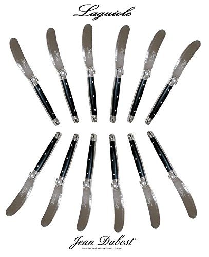 PRODUCT DESCRIPTIONS:AUTHENTIC LAGUIOLE : 12 original French Jean DUBOST LAGUIOLE butter knives. * * * Each knife : length = 15.50 cm (6") - weight = approx. 20 grams. * * * Manufactured in France. Delivered from France in two open wooden boxes with Certificate Of Authenticity. * * * This genuine LAGUIOLE set is suited for any occasion: a dinner party with your friends, the yearly Christmas party or the daily family dinner. With this exceptional LAGUIOLE silverware set each occasion indeed turns really special! * * * Our LAGUIOLE products also make that special, stylish gift: whether to celebrate a birthday, an anniversary, an engagement or wedding, a promotion or Christmas/New Year, this LAGUIOLE set always will be the perfect present. * * * For our complete French original LAGUIOLE cutlery + steak knives range (more than 400 products!) : please visit our shop ("FRENCH-DIFFUSION")