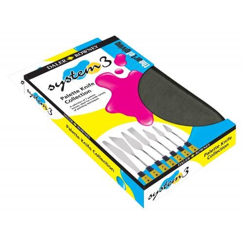 PRODUCT DESCRIPTIONS:This System 3 Palette Knife set includes seven different knives, enabling you to create great impasto shapes and textures. Why not experiment with palette knives and challenge yourself to try something new with acrylics?