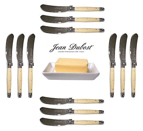 PRODUCT DESCRIPTIONS:AUTHENTIC LAGUIOLE : 12 original French Jean DUBOST LAGUIOLE butter knives. * * * Each knife : length = 15.50 cm (6") - weight = approx. 20 grams. Manufactured in France. Delivered from France in two open wooden boxes with CERTIFICATE OF AUTHENTICITY. * * * This genuine LAGUIOLE set is suited for any occasion: a dinner party with your friends, the yearly Christmas party or the daily family dinner. With this exceptional LAGUIOLE silverware set each occasion indeed turns really special! * * * Our LAGUIOLE products also make that special, stylish gift: whether to celebrate a birthday, an anniversary, an engagement or wedding, a promotion or Christmas/New Year, this LAGUIOLE set always will be the perfect present. * * * For our complete French LAGUIOLE cutlery + steak knives range (more than 400 products!) : please visit our shop ("FRENCH-DIFFUSION")