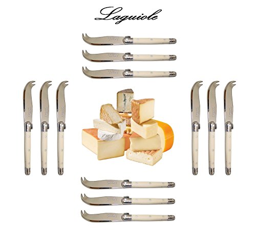 PRODUCT DESCRIPTIONS:AUTHENTIC LAGUIOLE : 12 original French Jean DUBOST LAGUIOLE cheese knives. * * * Each knife : length = 15 cm (5 7/8") - weight = approx. 20 grams. Manufactured in France. Delivered from France in two open wooden boxes with CERTIFICATE OF AUTHENTICITY. * * * Dishwasher safe (note: do not leave in a damp dishwasher). * * * This genuine LAGUIOLE set is suited for any occasion: a dinner party with your friends, the yearly Christmas party or the daily family dinner. With this exceptional LAGUIOLE silverware set each occasion indeed turns really special! * * * Our LAGUIOLE products also make that special, stylish gift: whether to celebrate a birthday, an anniversary, an engagement or wedding, a promotion or Christmas/New Year, this LAGUIOLE set always will be the perfect present. * * * For our complete French LAGUIOLE cutlery + steak knives range (more than 400 products!) : please visit our shop ("FRENCH-DIFFUSION")