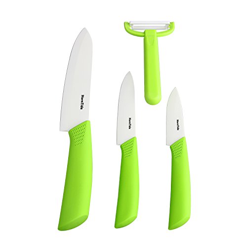 Get The Best Price For HornTide 4-Piece Ceramic Knives Set 3" Paring 4" Utility 6" Chef Knife Peeler Sheaths White Blade and Green Handle - Special Product Of The Year