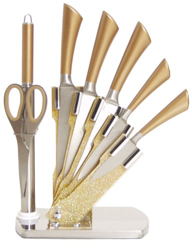 PRODUCT DESCRIPTIONS:New stainless steel 8 pieces knife set in glass effect block for a bargain price!