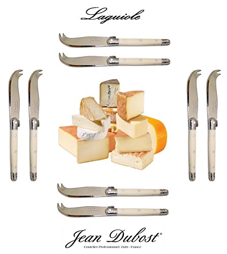 PRODUCT DESCRIPTIONS:AUTHENTIC LAGUIOLE : 8 original French Jean DUBOST LAGUIOLE cheese knives. * * * Each knife : length = 15 cm (5 7/8") - weight = approx. 20 grams. Manufactured in France. Delivered from France in two open wooden boxes with CERTIFICATE OF AUTHENTICITY. * * * Dishwasher safe (note: do not leave in a damp dishwasher). * * * This genuine LAGUIOLE set is suited for any occasion: a dinner party with your friends, the yearly Christmas party or the daily family dinner. With this exceptional LAGUIOLE silverware set each occasion indeed turns really special! * * * Our LAGUIOLE products also make that special, stylish gift: whether to celebrate a birthday, an anniversary, an engagement or wedding, a promotion or Christmas/New Year, this LAGUIOLE set always will be the perfect present. * * * For our complete French LAGUIOLE cutlery + steak knives range (more than 400 products!) : please visit our shop ("FRENCH-DIFFUSION")