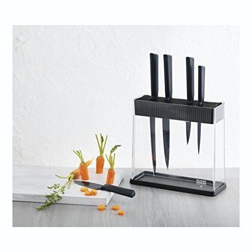 PRODUCT DESCRIPTIONS:A stylish addition to your kitchen, this new knife block from swiss design experts Kuhn Rikon comes complete with the four essential knives for any chef. A perfect balance of form and function.