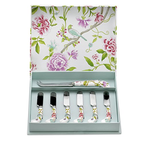 Buy New Sanderson Porcelain Garden by Portmeirion Stainless Steel and Porcelain Cheese Knife and 6 Spreaders, Set of 6, Multi-Colour - The Best Product At Cheap Price